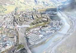 Il progetto propone lo spostamento del tracciato ferroviario a sud all’interno dell’area di progetto. Ciò consente di creare a nord del nuovo tracciato aree edificabili collegate direttamente al centro storico esistente. Queste aree vengono occupate da edifici a blocco con corte interna adeguati al contesto del centro storico; tale soluzione permette di immaginare un’evoluzione senza interruzioni del centro stesso. Nella nuova area di edificazione a sud si crea una zona multifunzionale che si presta ad essere utilizzata in modi differenti. Tale area è caratterizzata da una struttura lineare con orientamento nord-sud che non presenta la logica delle altre strutture utilizzate.
